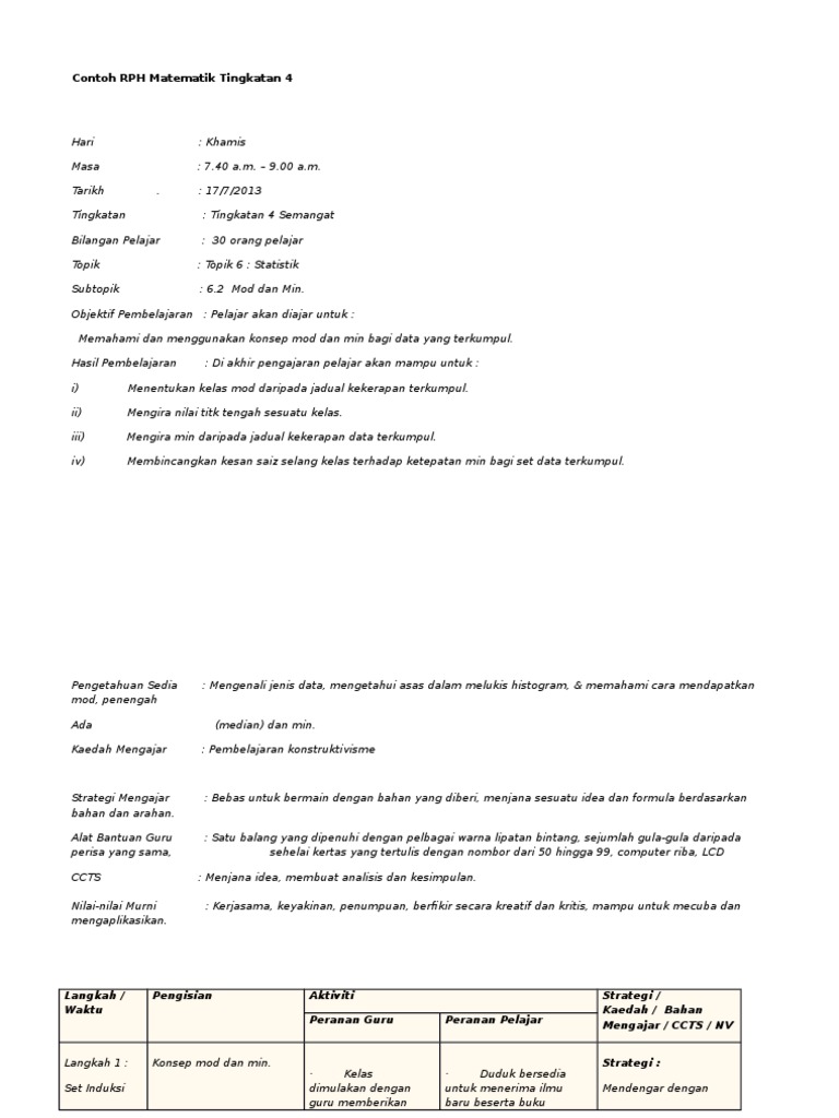 Coontoh Rancangan Pengajaran Harian Matematik Tingkatan 4 Pdf